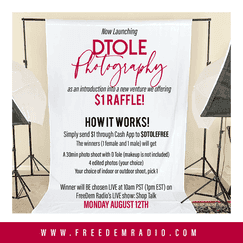 The Shop Talk team is sponsoring a Photo Shoot Raffle to help launch the new endeavor of Demetrius Tolefree: D Tole Photography All you...